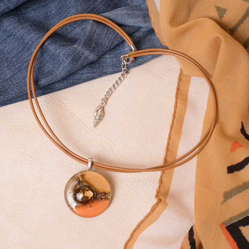 Montado en doble cordón de cuero suave, combina a la perfección con el color del dije para un look armónico y fácil de llevar.