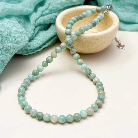 Diseñado con cuentas redondas de amazonita de 6 mm, es simple pero con carácter. Lo podés usar solo para un look sutil o sumarlo en layering con otros collares. Ideal para todos los días y para cualquier estilo.